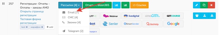 Зайдите в базу, по которой будет проводиться рассылка, и выберите в меню раздел «Email».