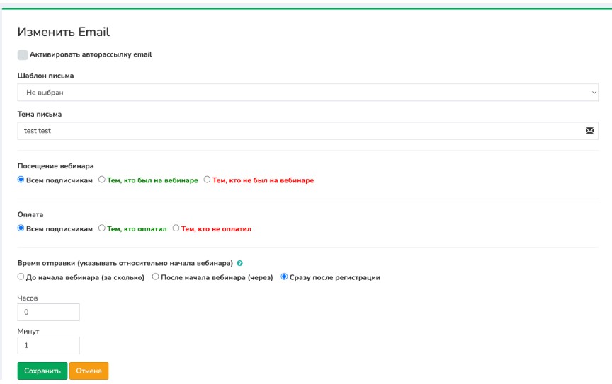 Теперь ваши письма будут отправляться в соответствии с расписанием вебинаров, которое вы настроили.