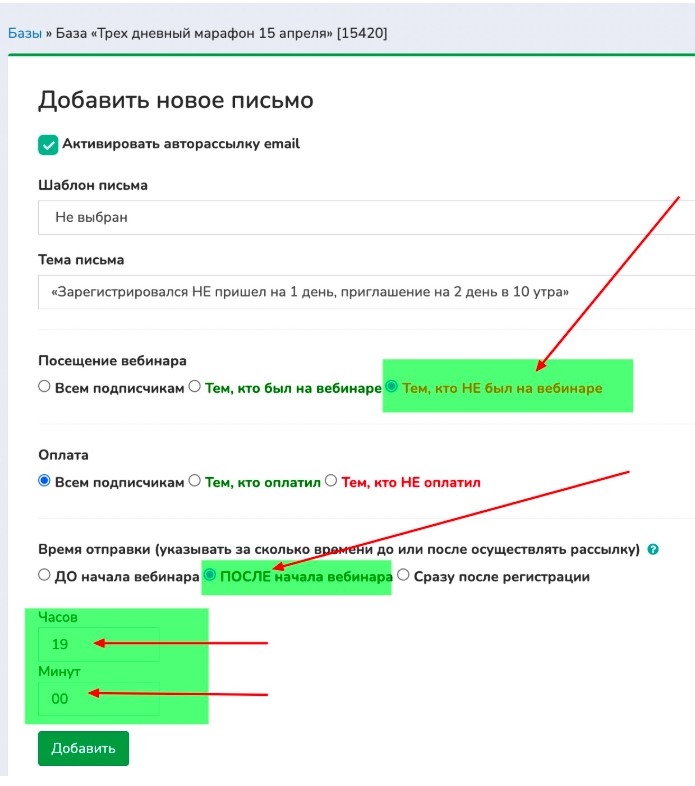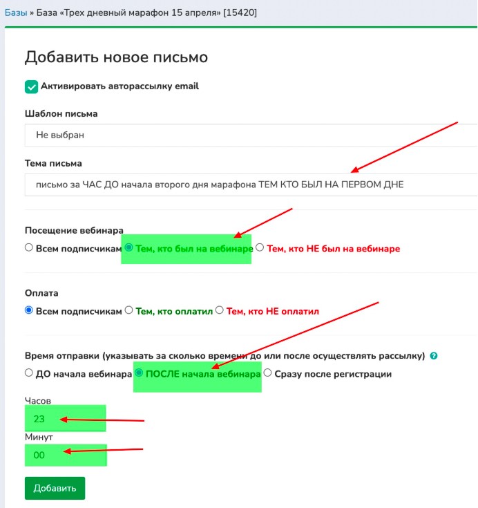 Настройка автоматической рассылки для трехдневного марафона: пошаговая инструкция