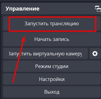 В OBS Studio нажмите кнопку «Запустить/Начать трансляцию».